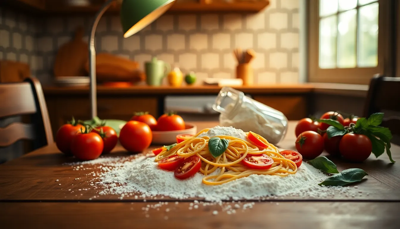 A photorealistic image of a homemade lasagna displayed on a rustic wooden table. The warm kitchen lighting creates a cozy vibe, highlighting the dish's vibrant colors with rich browns and greens. Fresh herbs surround the ceramic dish, adding an inviting touch. The shallow depth of field draws the viewer's eye to the lasagna, while the textured wooden surface enhances the home-cooking atmosphere.