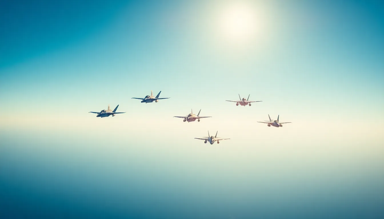 Fighter Jets in Formation Over Mountains