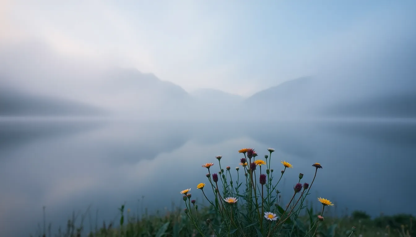 Wildflowers by the Shimmering Lake
