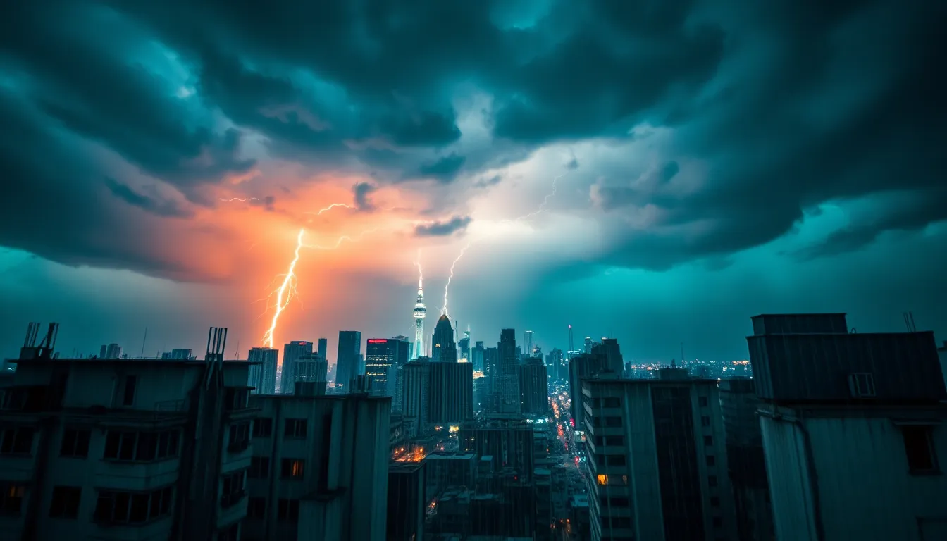 Colorful Umbrellas on a Rainy City Street