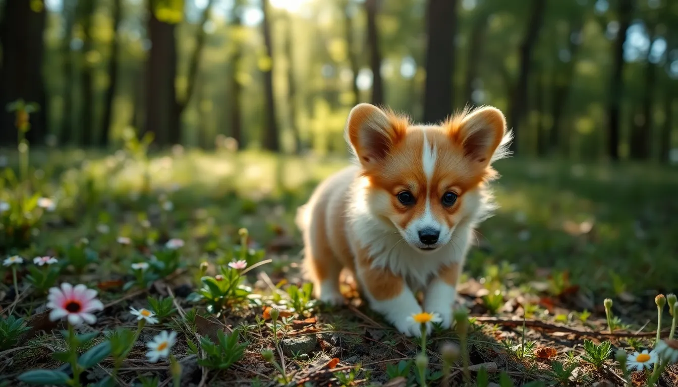 Corgi Puppy Playing with Colorful Toys