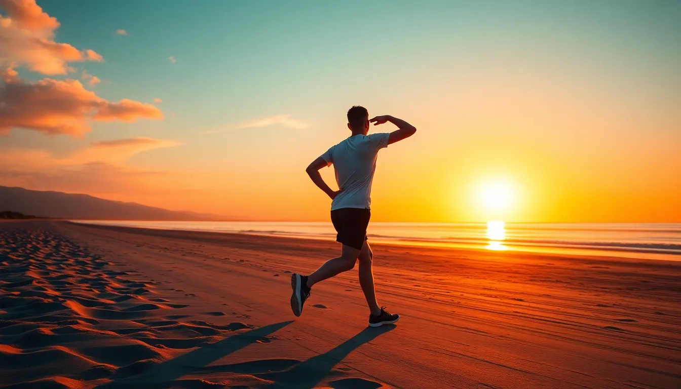 Young Boy Running on Track at Golden Hour
