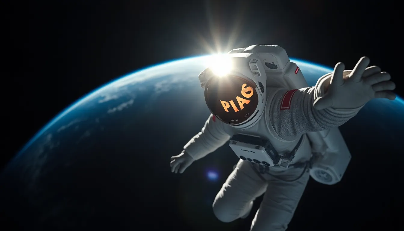 A breathtaking scene depicting an astronaut floating in the vastness of space, with Earth beautifully framed in the background. The dramatic lighting creates a halo around the helmet, emphasizing the isolation of space exploration. The vibrant colors of Earth contrast against the deep blackness of space, highlighting the beauty of our planet from afar. This image captures the essence of adventure and the unknown.
