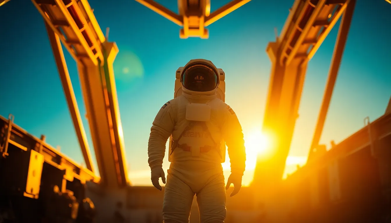 A striking image captures an astronaut's footprint etched into the lunar surface, with the sun casting light on the scene. In the background, the silhouette of the lander looms against the horizon, adding depth to the composition. The warm tones and soft highlights from the Kodak Portra 400 color palette enhance the ethereal quality of the lunar landscape. This photograph encapsulates the monumental moment of human achievement during lunar exploration.