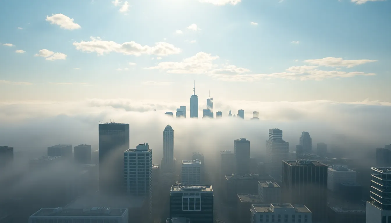 Futuristic Cityscape Featuring Cloud Facilities