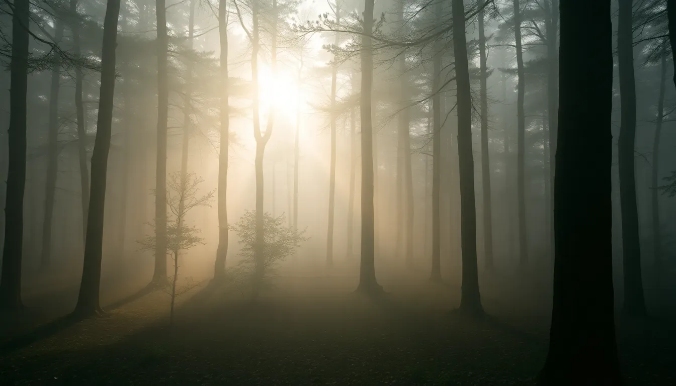 Misty Forest with Mossy Log